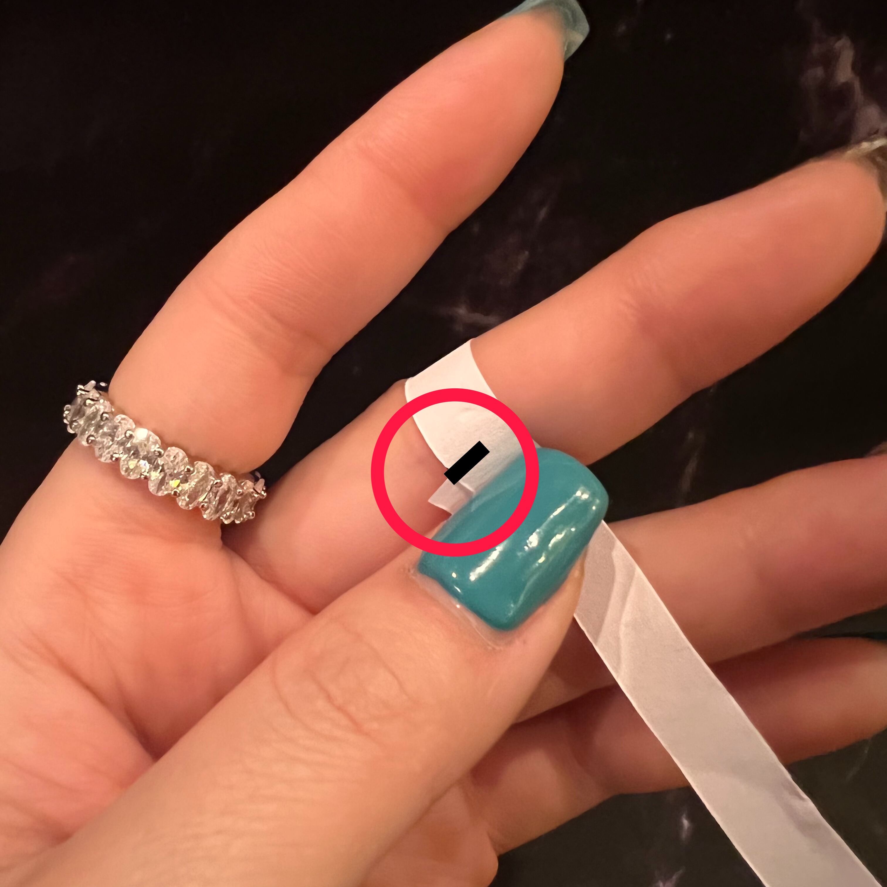 自分の指にぴったりのリングがある場合、リングサイズ棒を使ってサイズを測ってください。
