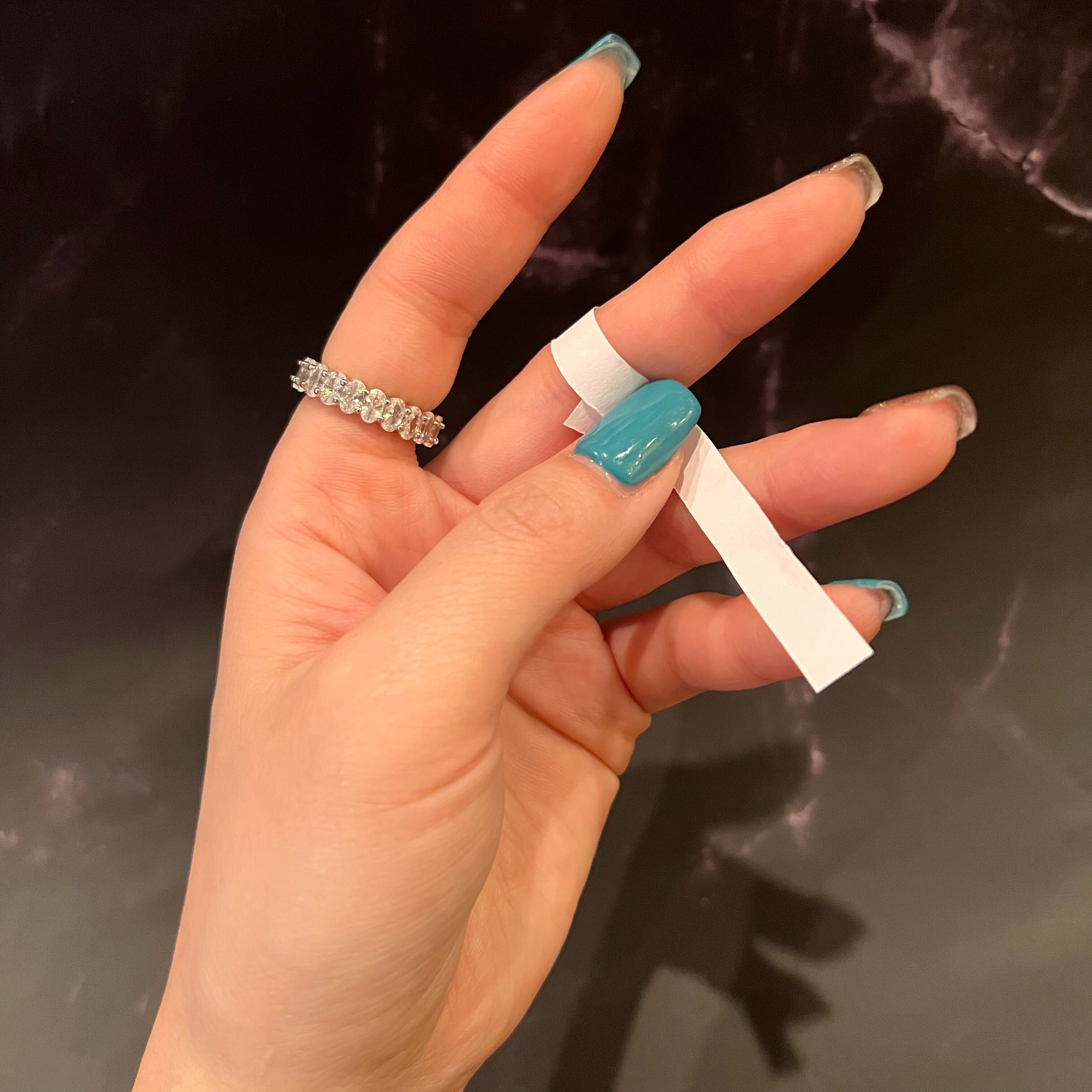 細い紙や糸を指に巻きつけてその長さを測れば、それがリングの内円周となります。